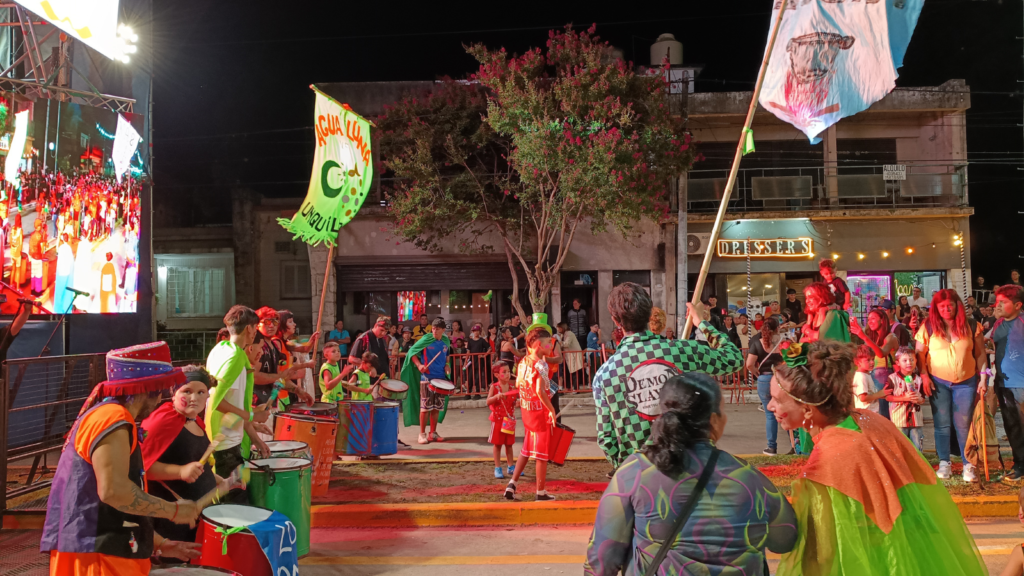 En este marco, la calle fue la pasarela para que las agrupaciones de carnaval La Unquillense, Agua de Luna, Sueño de Locos, y Arleking desplegaran sus ritmos y danzas ante los presentes. Completaron la grilla Candombe del Río, Arriba Sur Candombe, e Imperio de Ouro.